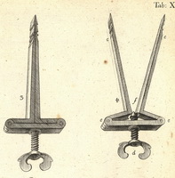 | Élévatoire, fer forgé XVIIe s. | | L. 12 cm . Masse 15 gr. |