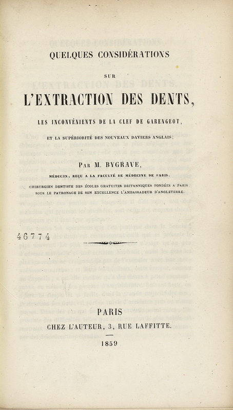au collet de la dent », « Improved forceps for the use of dentists », in