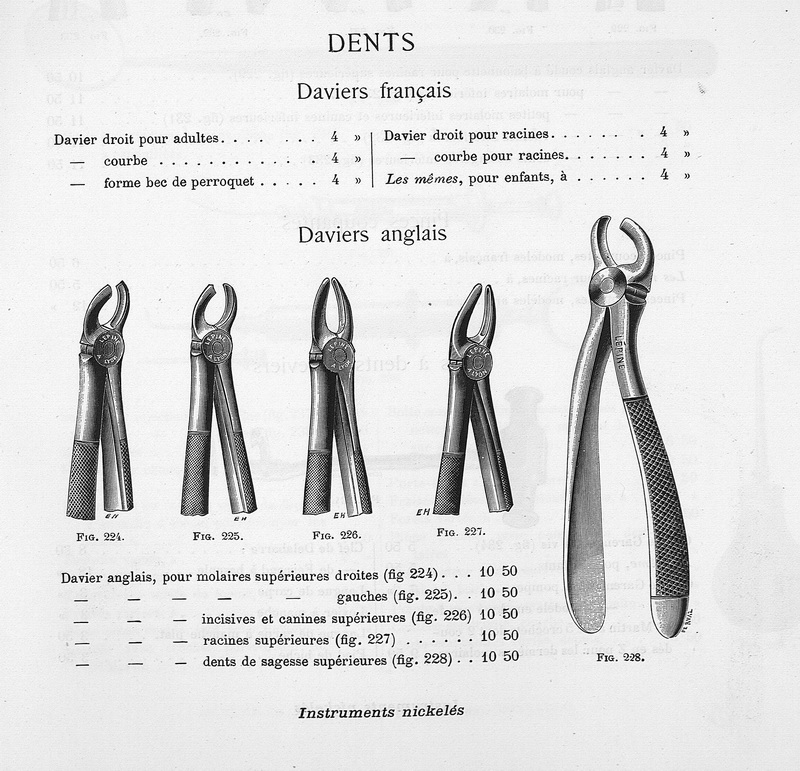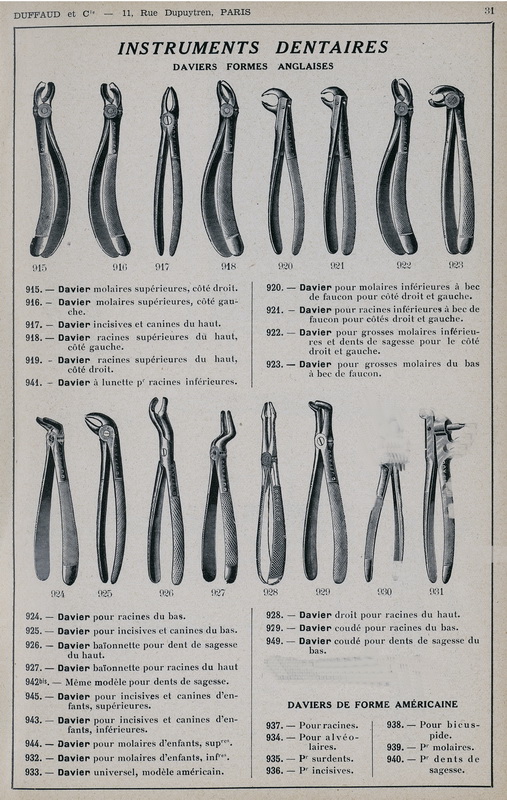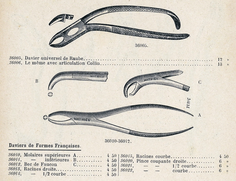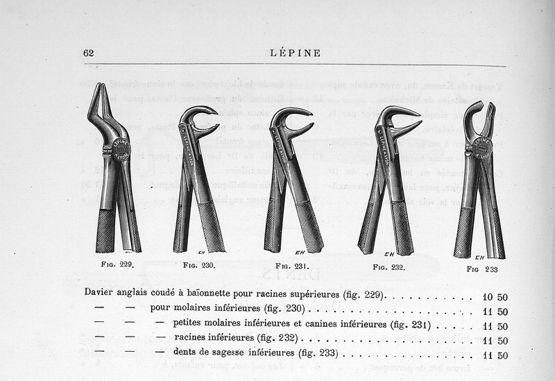 dent, mais aussi à l’extraire. Le terme de pince subsiste très longtemps désignant