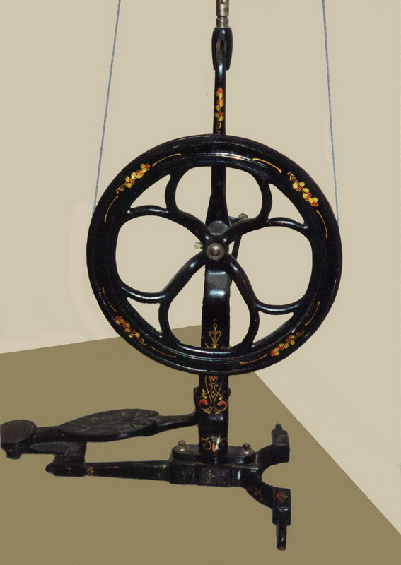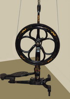 Tour à pédale de cabinet pour prothèse. Son volant petit, massif, à trois branches, richement décoré de feuillages dorés, 2ème moitié du XIXe s.