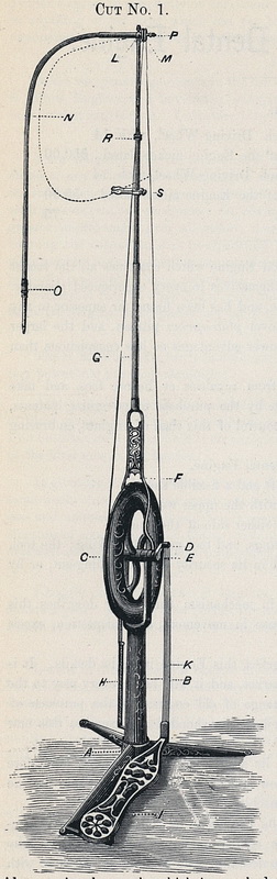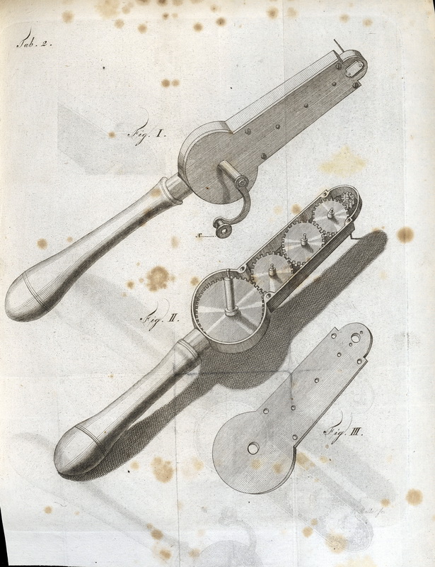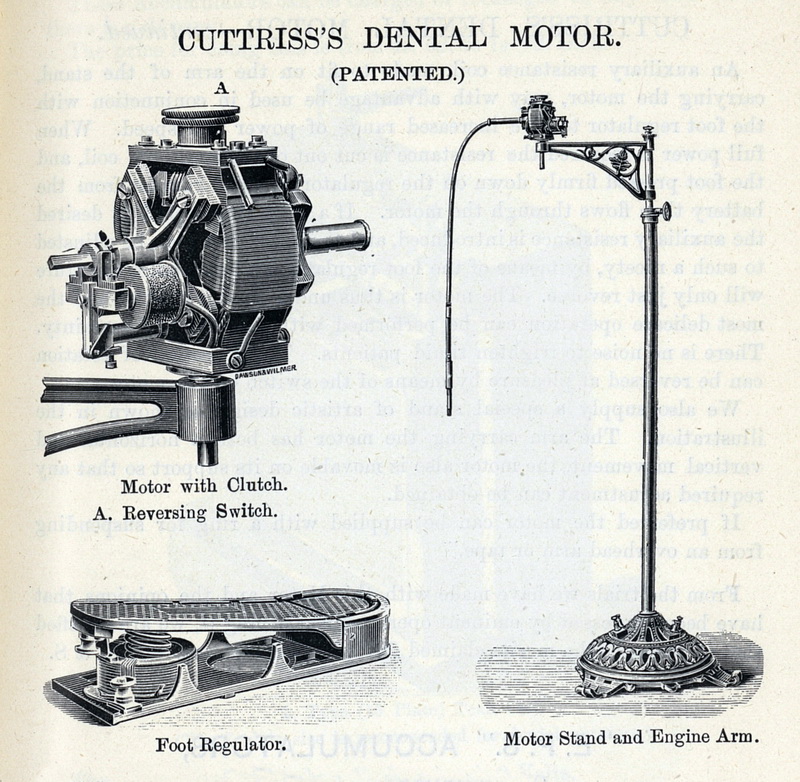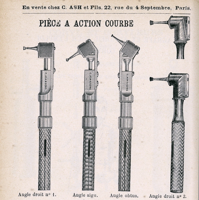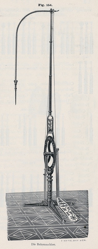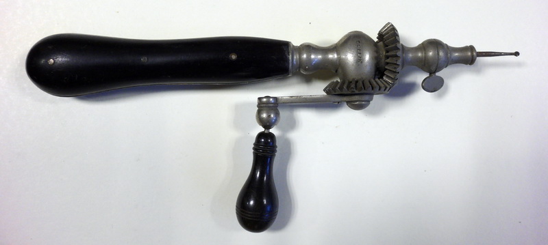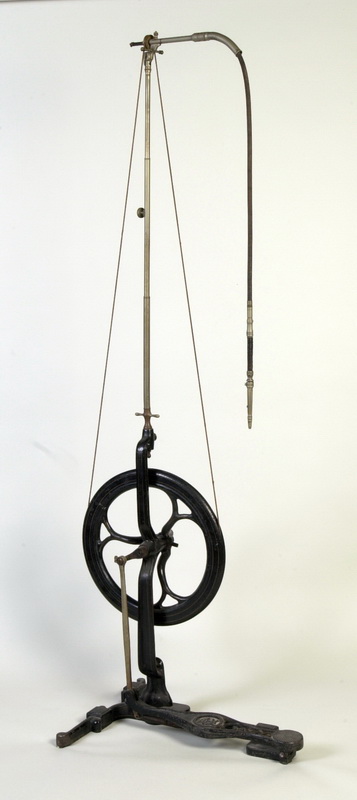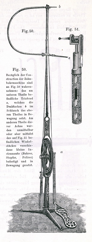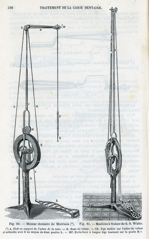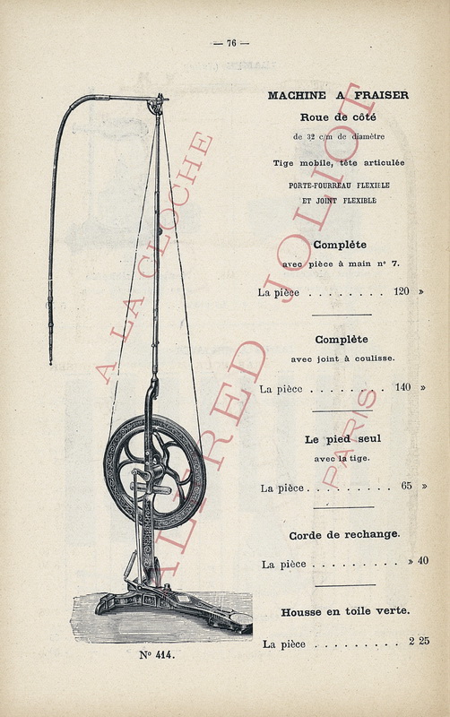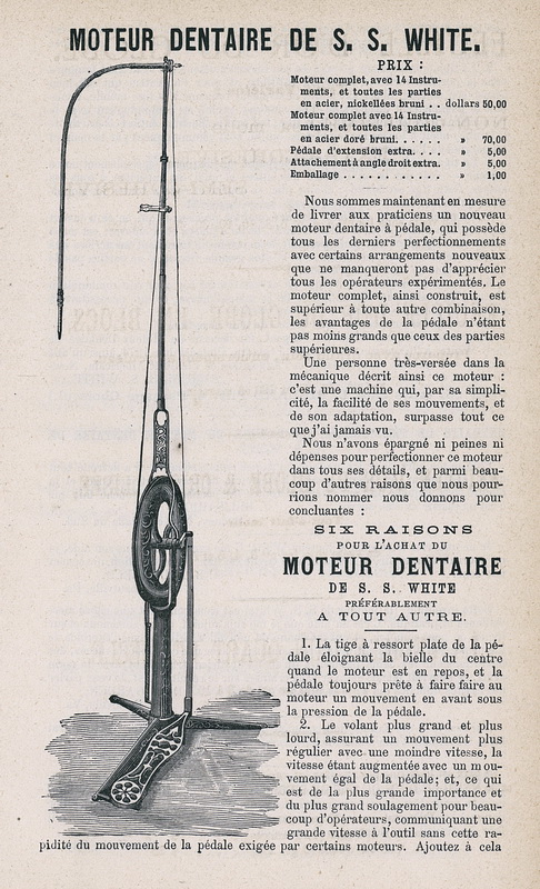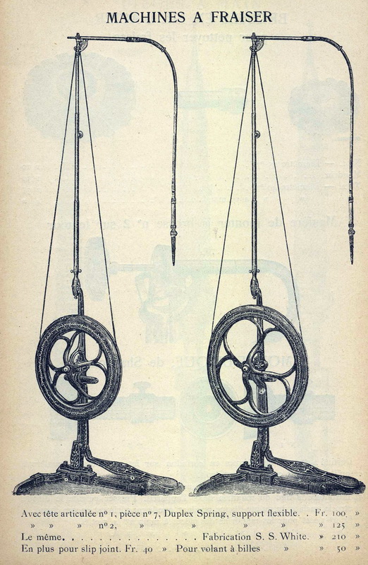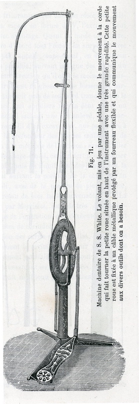 Tour à pédale de cabinet pour prothèses. Son volant à quatre branches, 1850-1880