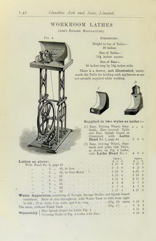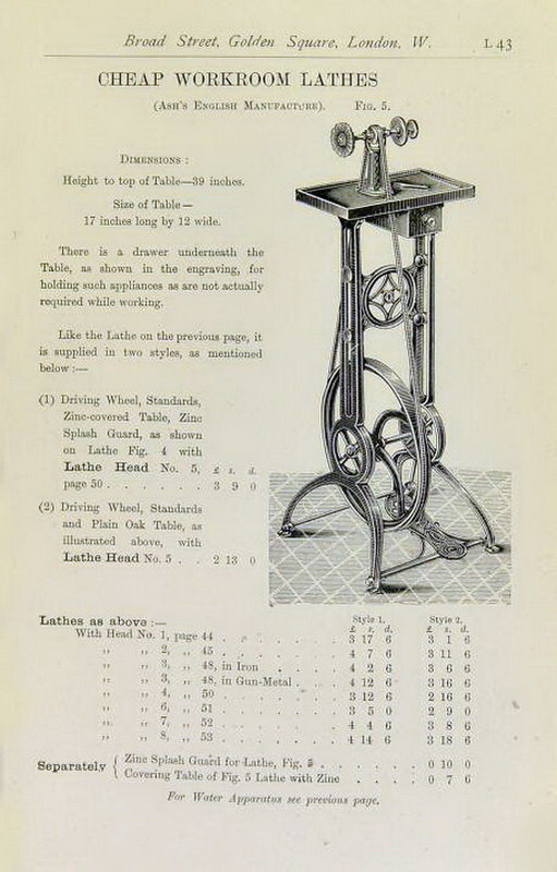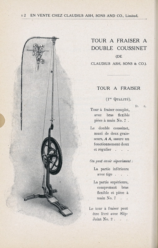 Tour à pédale de cabinet pour prothèses, vu de face, 1850-1880, (détails) |
