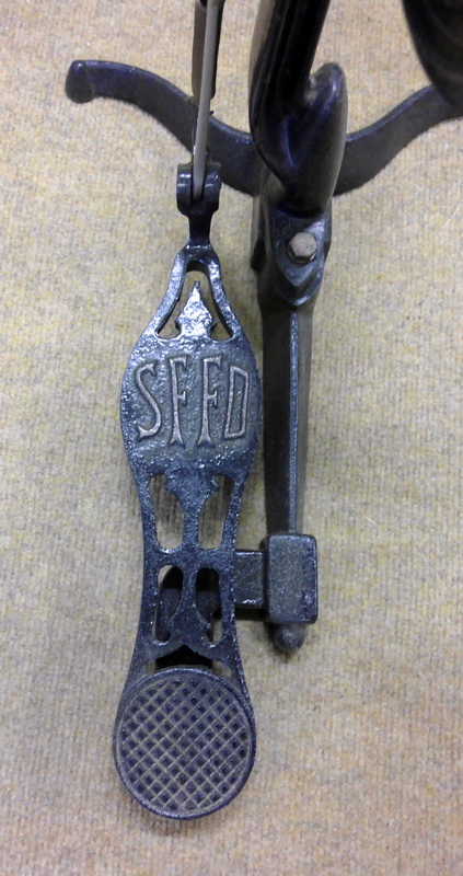 Tour à pédale de cabinet pour prothèse, 2ème moitié du XIXe s. (détail) Tour à pédale de cabinet pour prothèse, sa pédale, 2ème moitié du XIXe s.