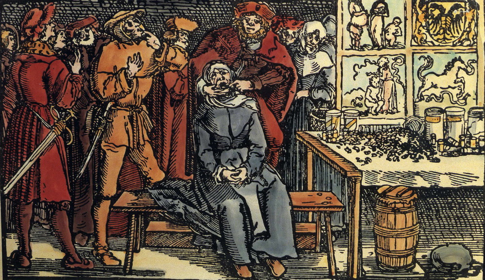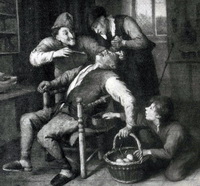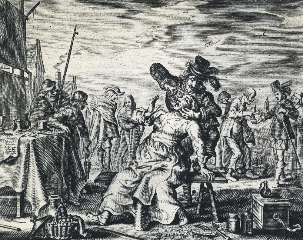 Extraction dentaire, gravure, XVIIe s.