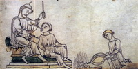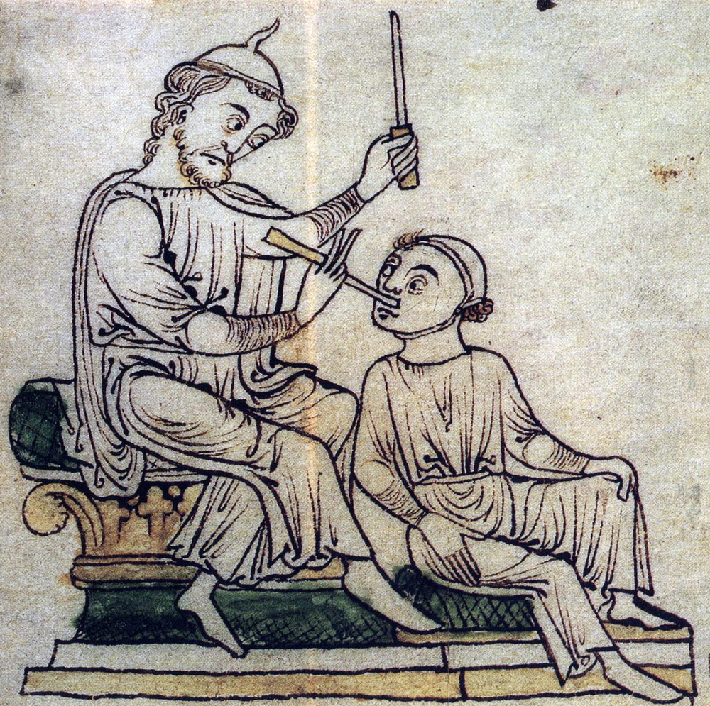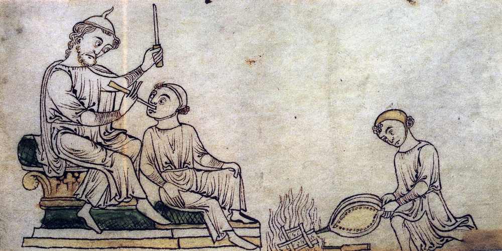 Scène de cautérisation, dessin, XIIe s.