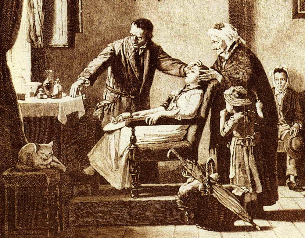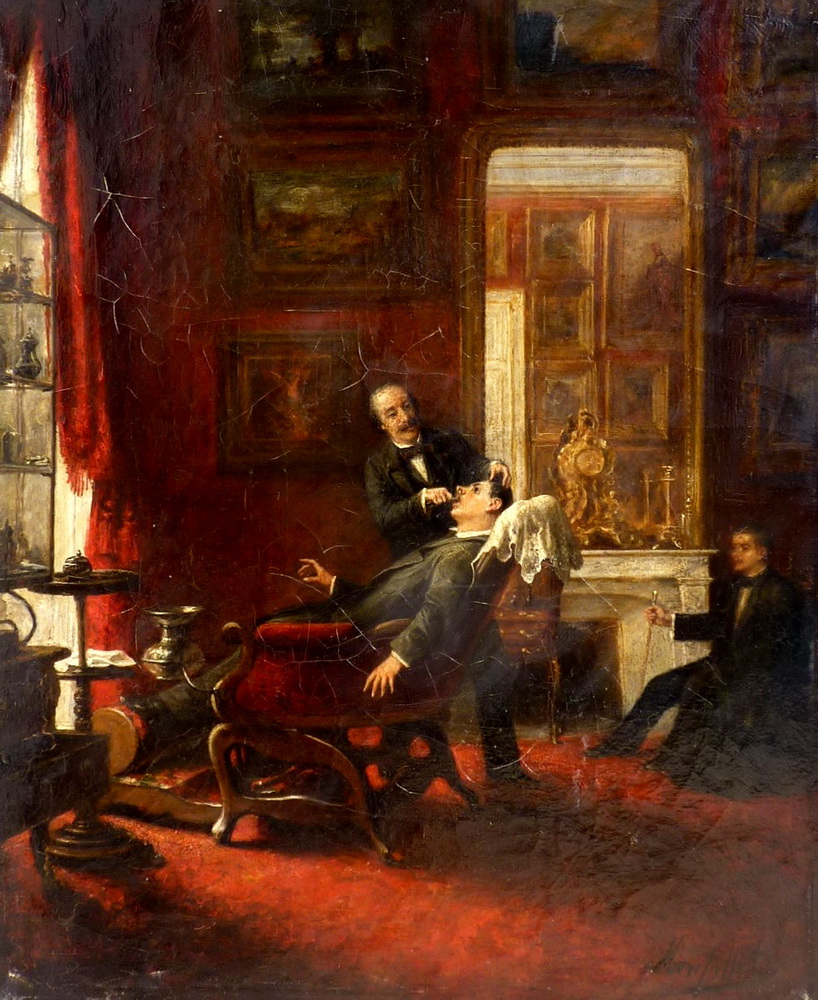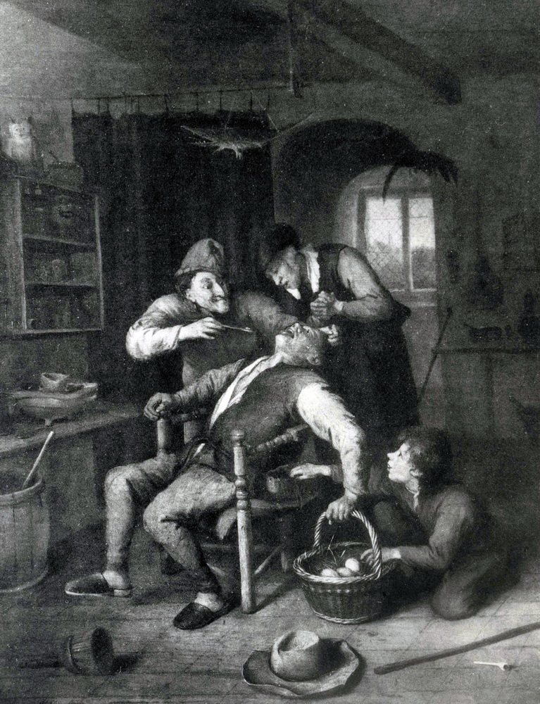 Extraction dentaire dans un cabinet, tableau, ca. 1870