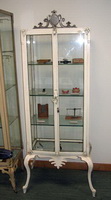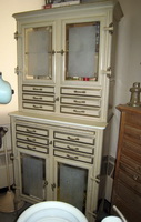 | Meuble dentaire laqué crème avec trois portes vitrées à la partie
