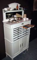 | Meuble dentaire, en bois laqué blanc, un miroir au dessus du plan de