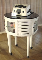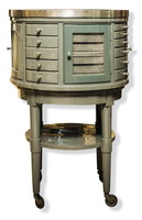 tiroirs, sur pieds à roulettes. Posé dessus, un appareil à ionophorèse. |