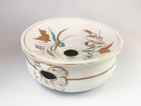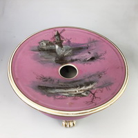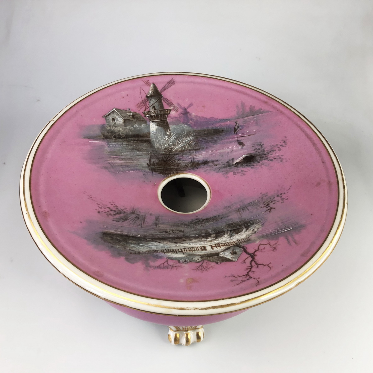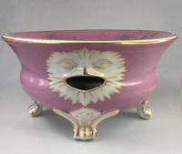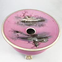 | Crachoir en porcelaine, paysages sur fond vieux rose, filet or, 1ère moitié
