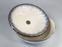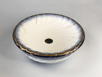 Crachoir en porcelaine, blanche, bordure bleue et filet or, 1ère moitié du