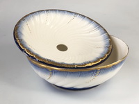 | Crachoir en porcelaine, blanche, bordure bleue et filet or, 1ère moitié du