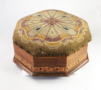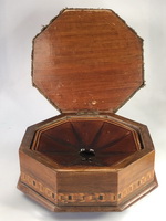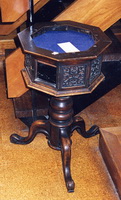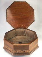 | Crachoir hexagonal sur pieds, en noyer travaillé, avec cuvette intérieure en