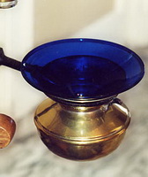 | Crachoir de type Butler, avec entonnoir en verre bleu, de chez Contenau et