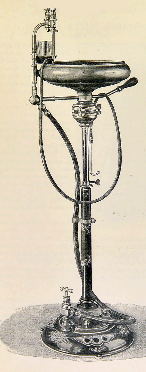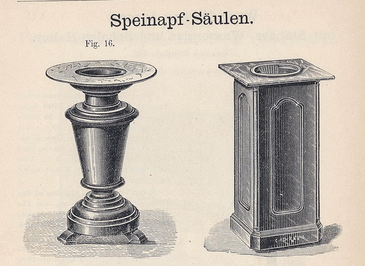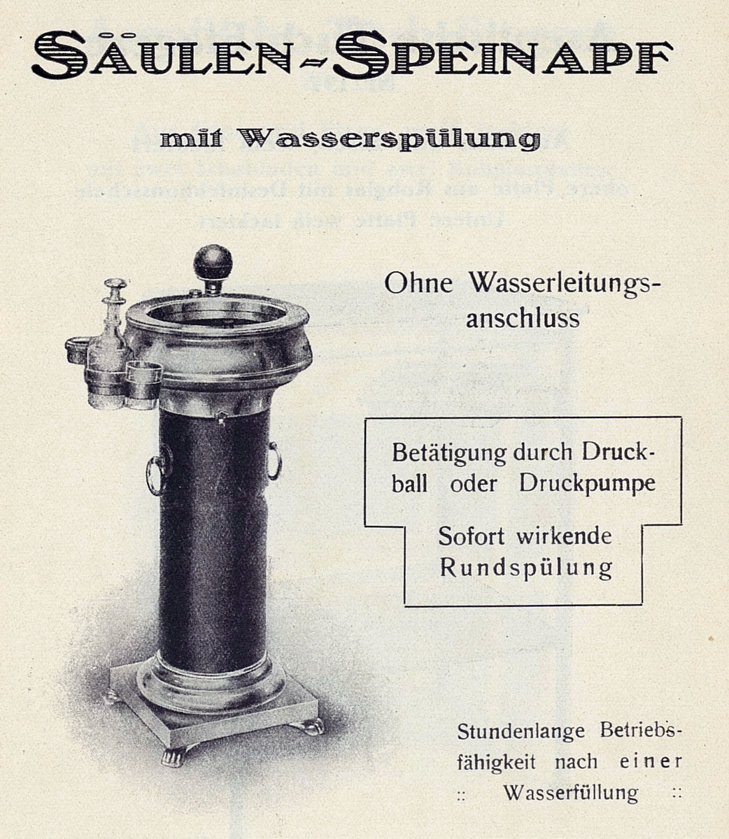 | Crachoir colonne avec pompe à rinçage, vers 1900 |