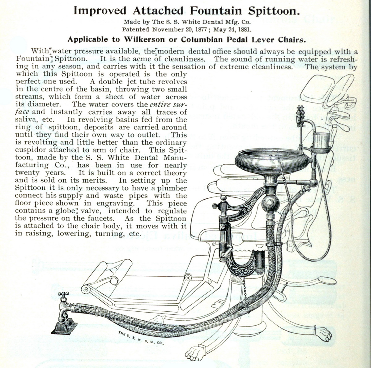 | Crachoir de Clark monté sur un Wilkerson, avec le porte verre et la pompe à