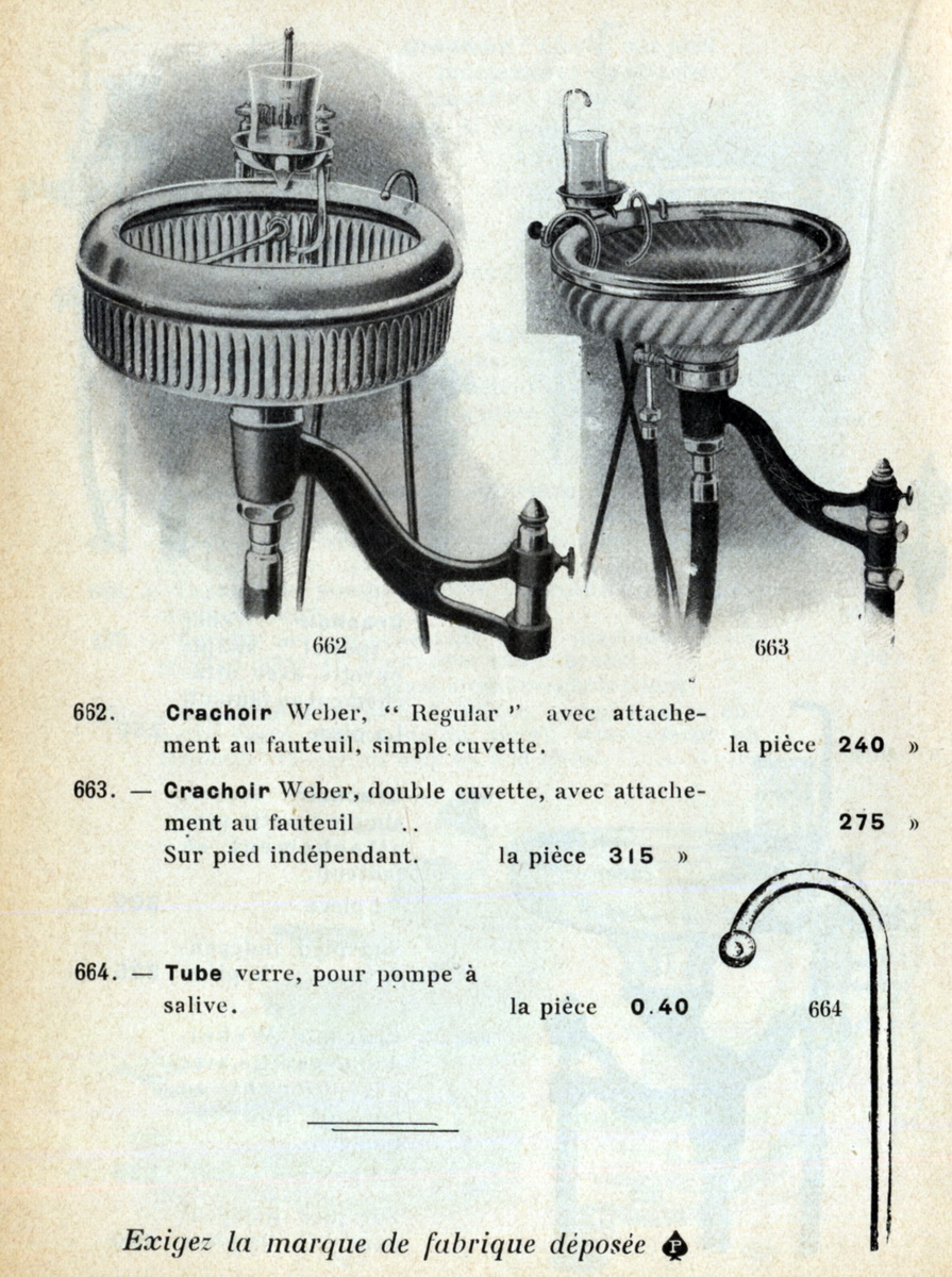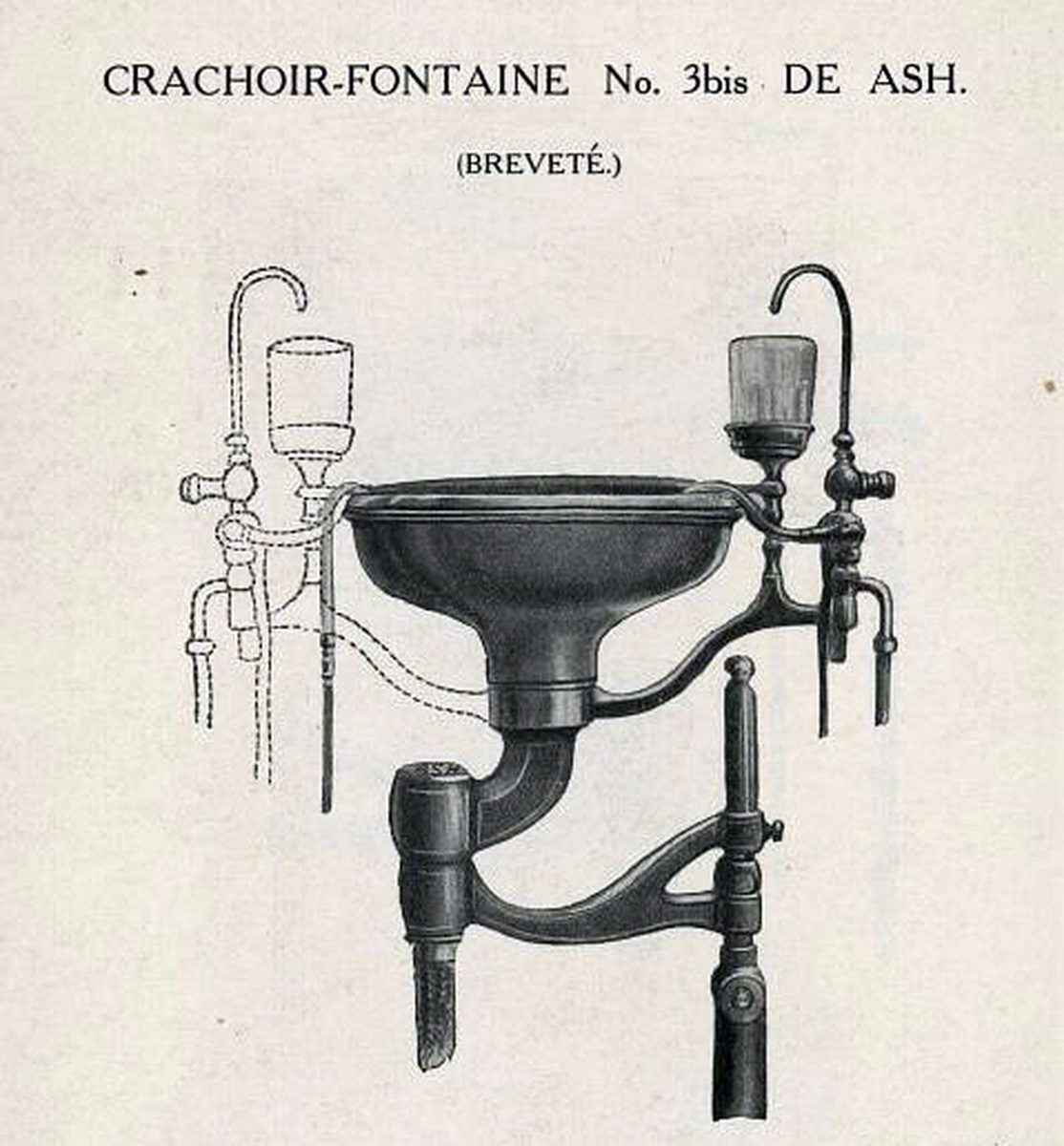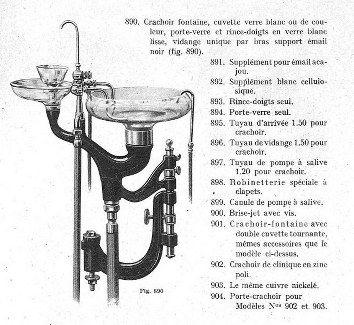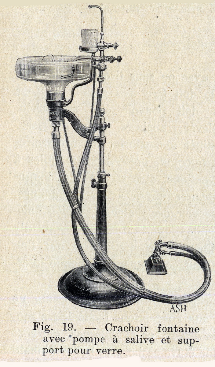 petite vasque pour le verre, l’autre pour le crachoir fontaine. 1918 |