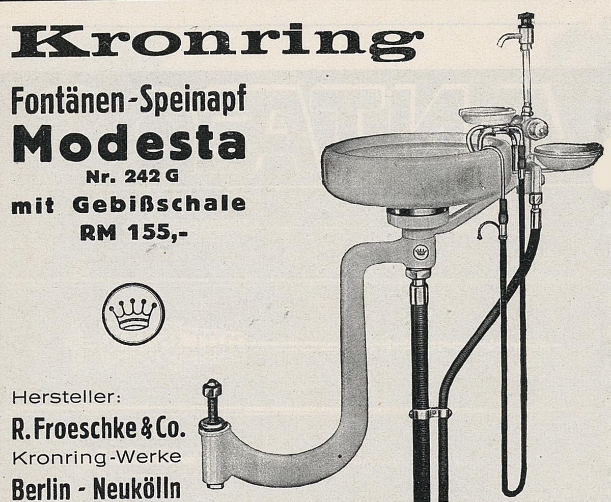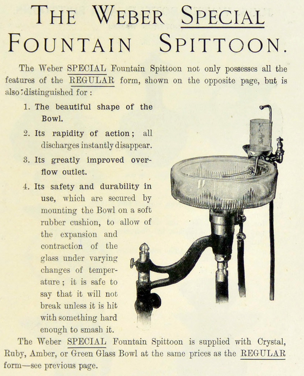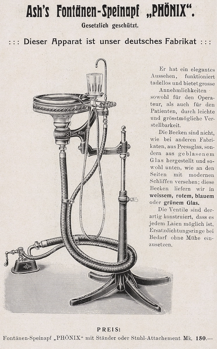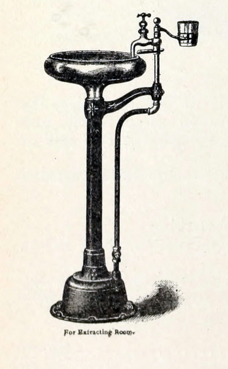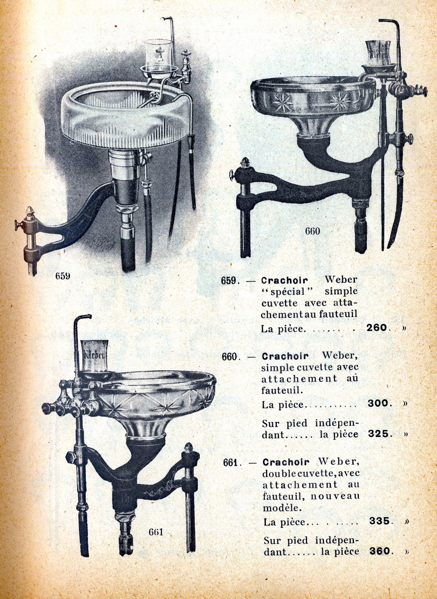 petite vasque pour le verre, l’autre pour le crachoir fontaine. 1918 |