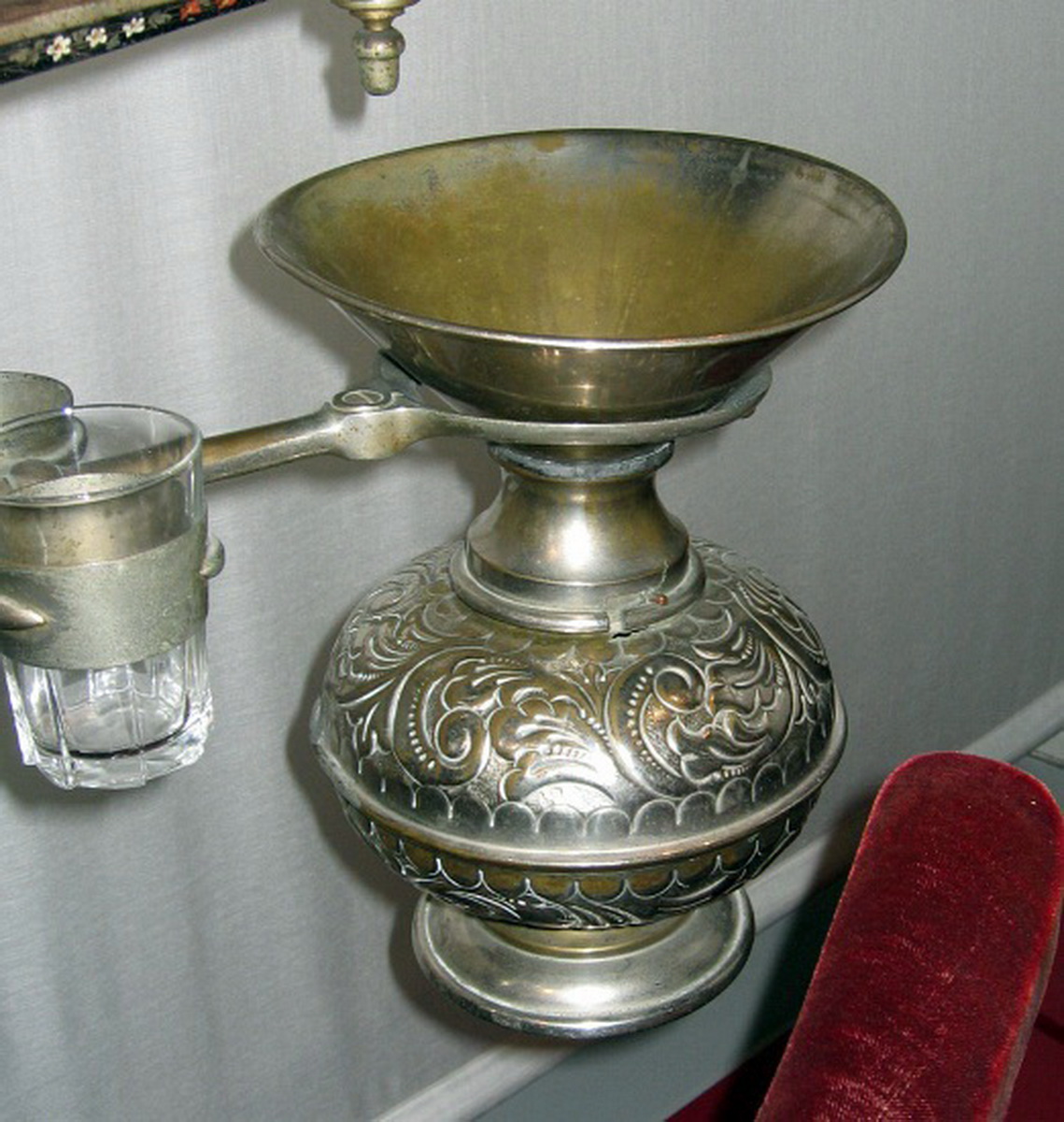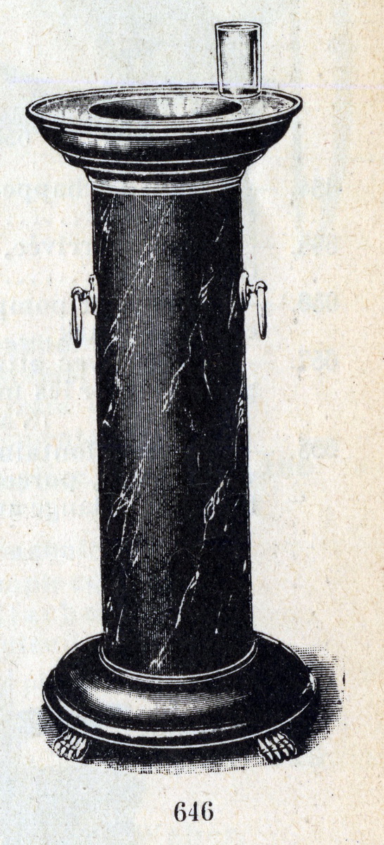 | Crachoir colonne avec porte-verre et pompe à rinçage, vers 1900 |
