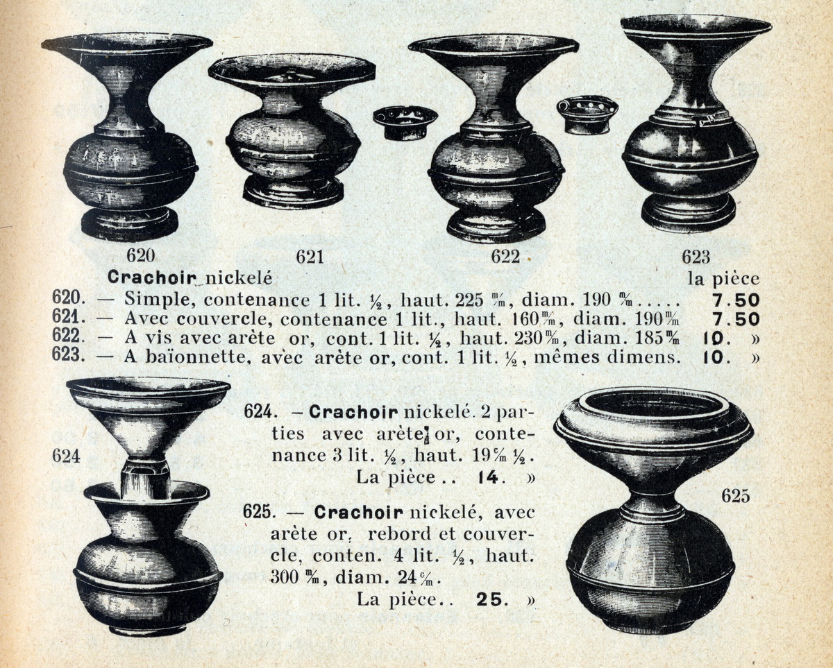 crachoirs du début du XIXe s. sont toujours proposés, au début du XXe s., preuve