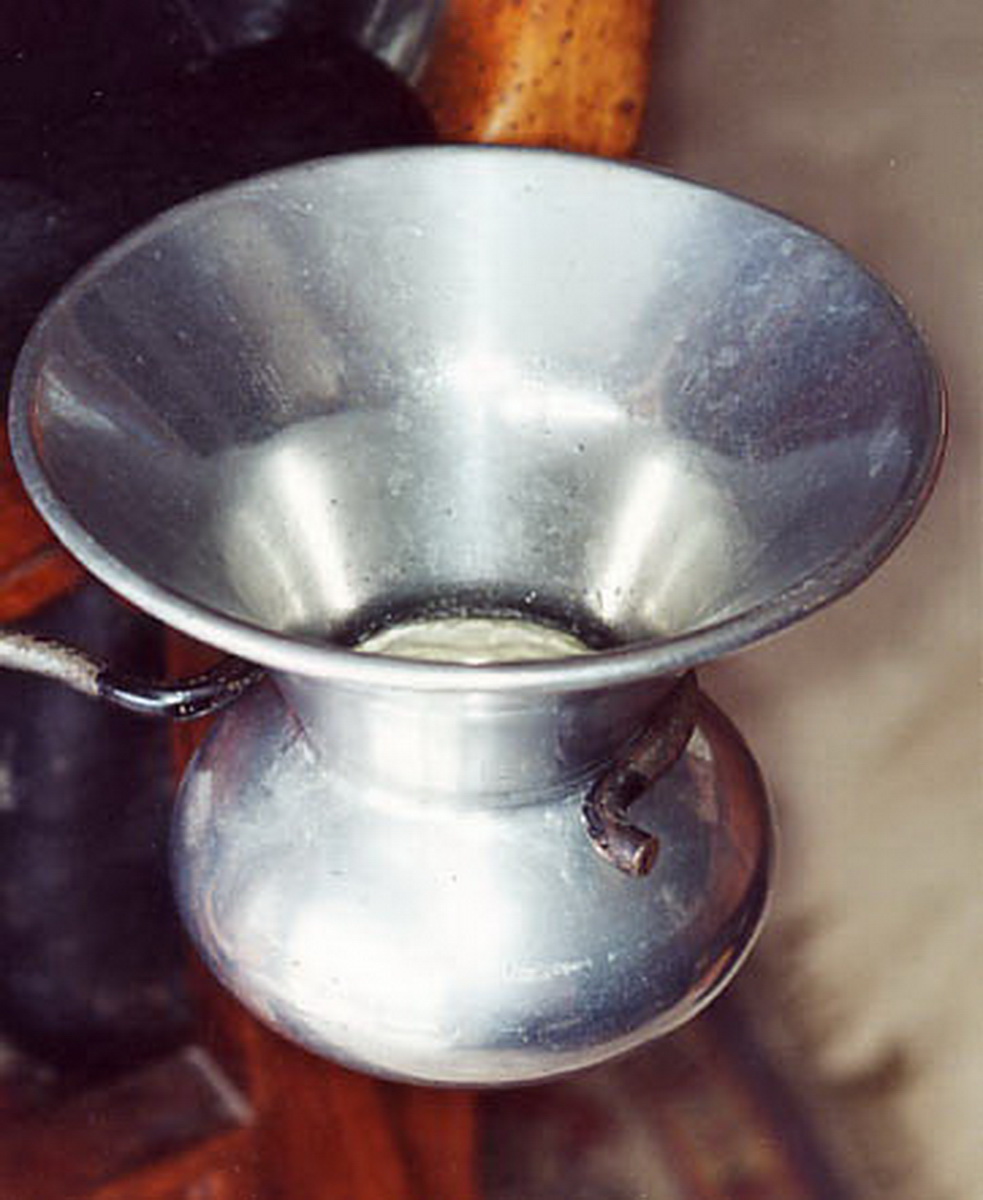 | Crachoir en cuivre nickelé vernis ( ?) |