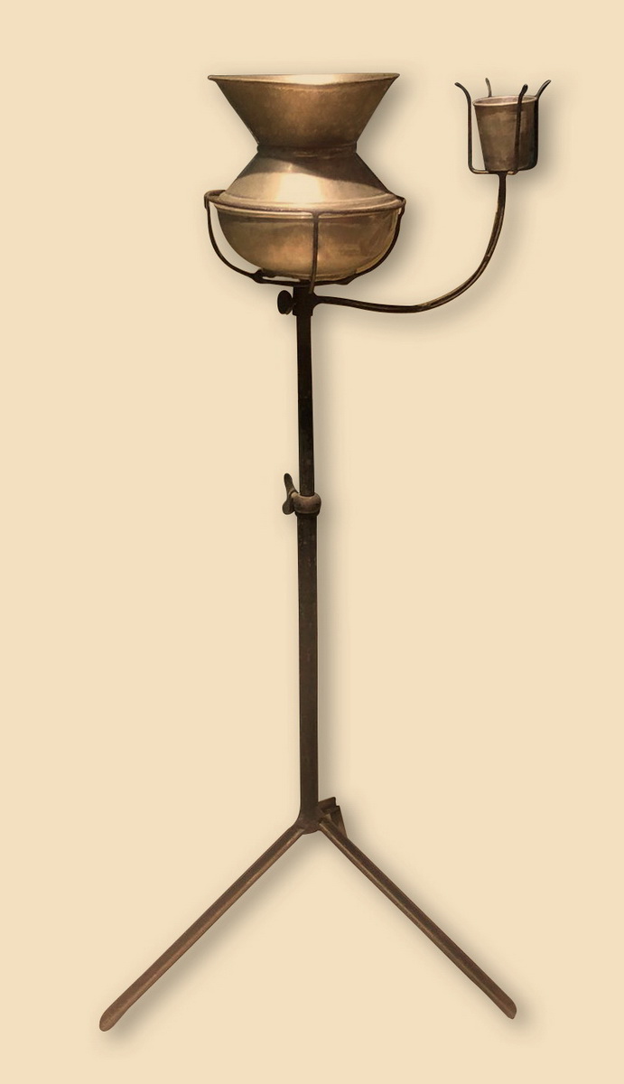 | Crachoir en laiton sur pied avec un porte verre, vers 1850 |