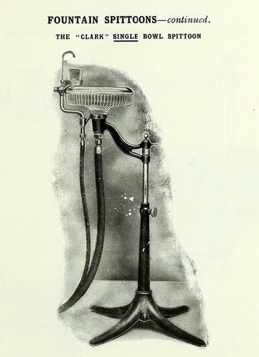 Le crachoir à usage professionnel apparait vraisemblablement chez les